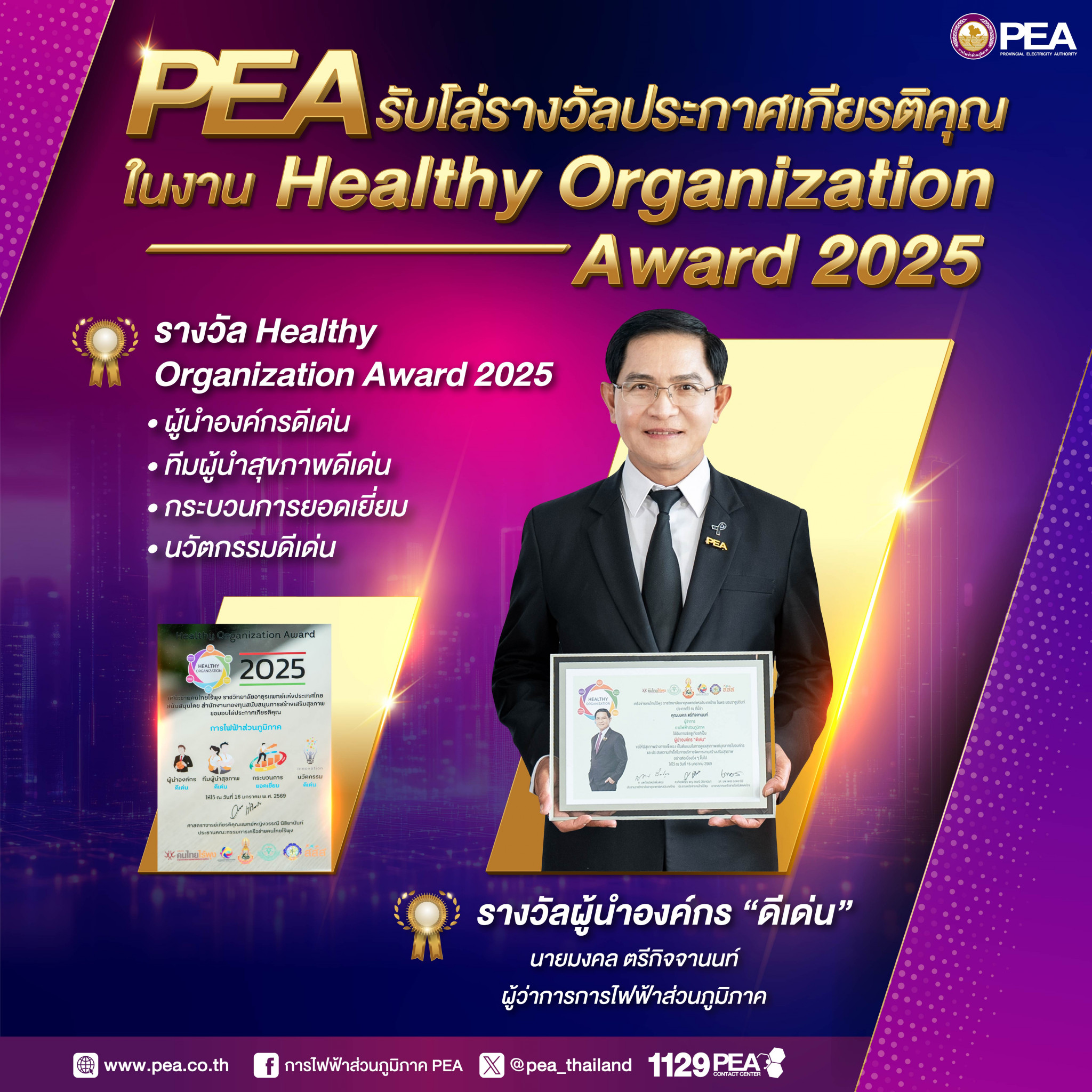 PEA รับโล่รางวัลปนะกาศเกียรติคุณ ในงาน HEALTHY Organization award 2025