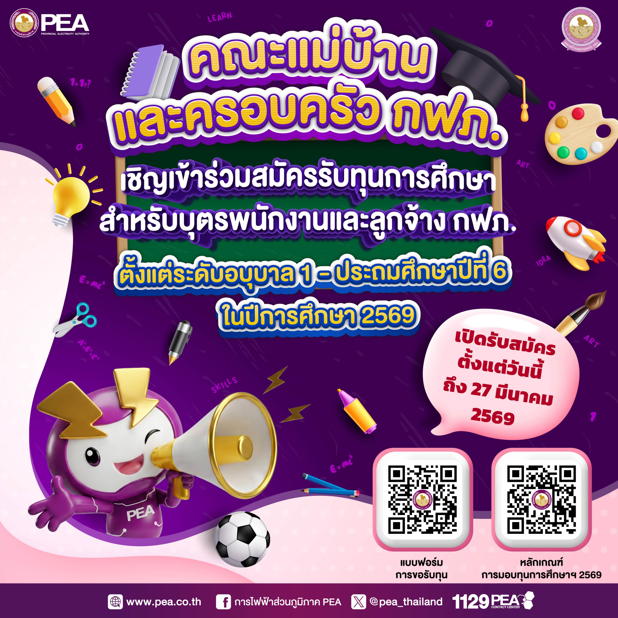 คณะแม่บ้านและครอบครัว กฟภ. เชิญเข้าร่วมสมัครรับทุนการศึกษาสําหรับบุตรและพนักงานลูกจ้าง กฟภ.