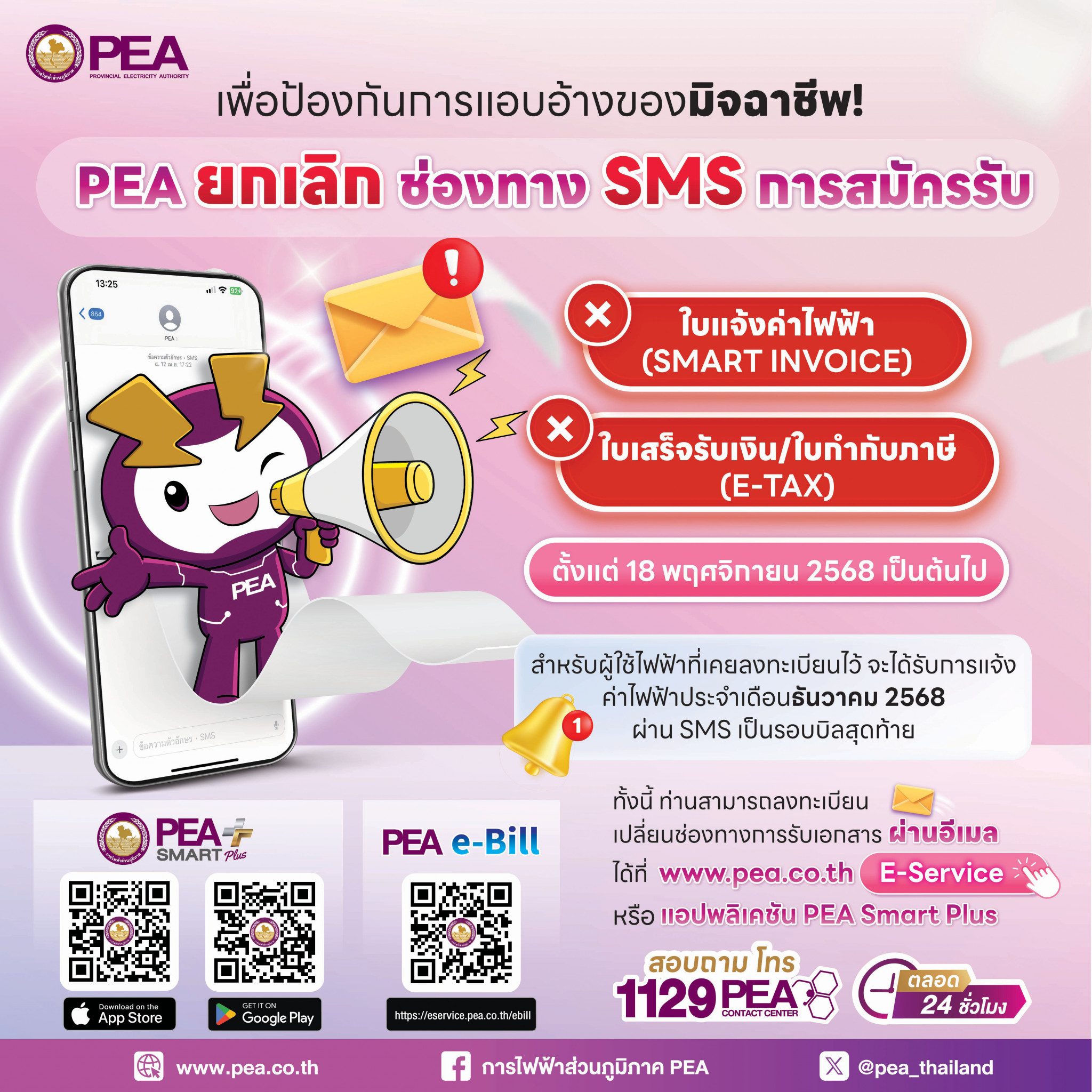 เพื่อป้องกันการแอบอ้างของมิจฉาชีพ PEA ยกเลิกช่องทาง SMS ในการสมัครรับข้อมูล
