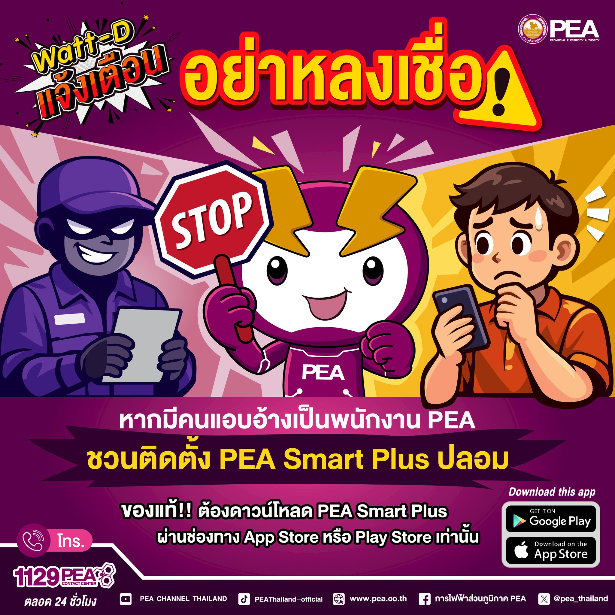 อย่าหลงเชื่อหากมีคนแอบอ้างเป็นพนักงาน PEA ชวนติดตั้ง Smart Plus ปลอม